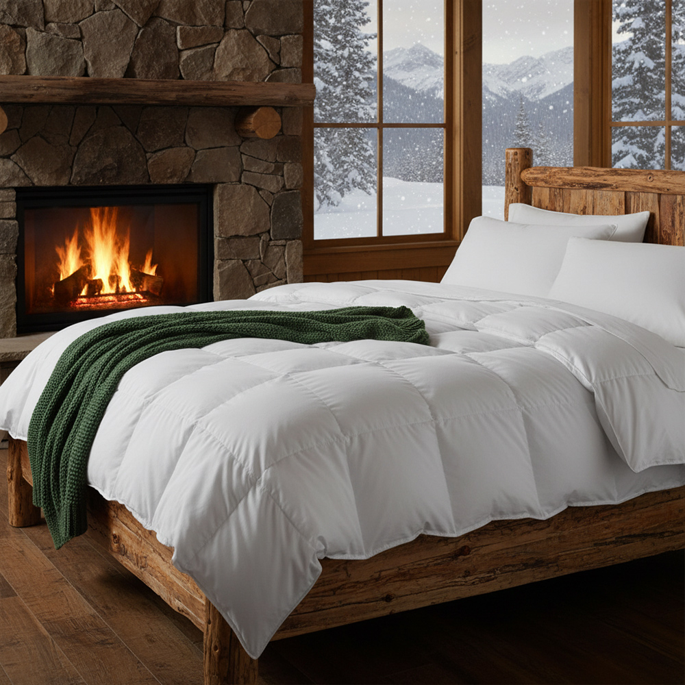 If you're sensitive to the cold, choose a warmer combination; if you're a warmer person , choose a lightweight or mid-season version. Natural down always provides a dry microclimate even with the window slightly open, thanks to its hygroscopicity .