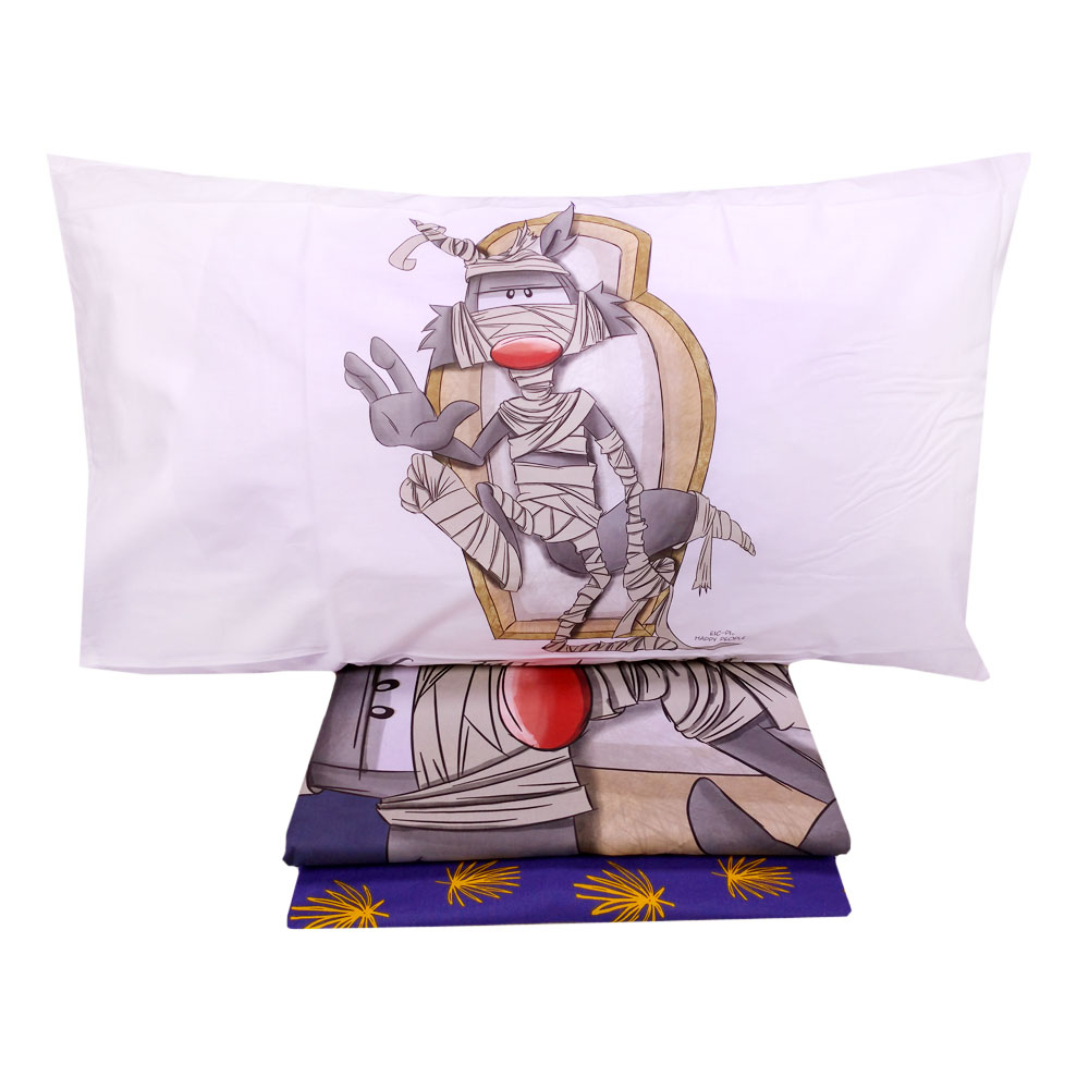 EIC-PI HAPPY PEOPLE complete duvet cover consisting of duvet cover, bottom sheet with elasticated corners and pillowcase measuring 50x80 cm, made of 100% cotton percale. Excellent as an original and nice gift idea. Made in Italy